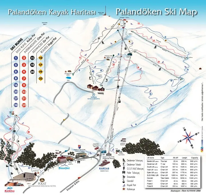 - Facilities: Palandöken features 3 chairlifts, 1 ski lift, and 2 gondolas, though not all are operational at the same time due to maintenance or weather. The lifts generally operate from 9:00 AM to 4:30-5:00 PM, depending on conditions. Electronic passes streamline access to all lifts.