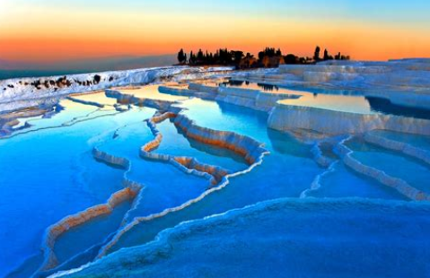 - Pamukkale Travertines: Walk barefoot on the cascading white terraces formed by mineral-rich thermal waters. Take a dip in the Cleopatra’s Pool (extra fee) for a truly unforgettable experience.